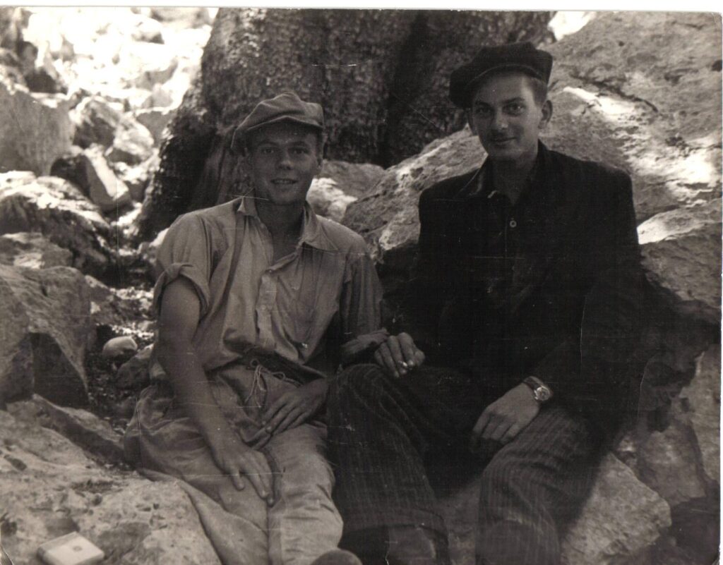 Oliver’s grandfather is on the right of this photograph taken near the house. John was an S.O.E. agent sent to Crete during the Occupation to foster unity between the resistance factions. The S.O.E. pulled off an extraordinary stunt in the abduction of the general commanding the German garrison – for this story, see Ill Met by Moonlight.