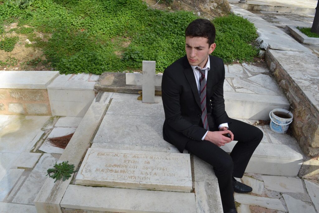 Her early life in Knossos Crete was bliss. She spoke about the gardens of the villa Ariadne next to her home – where the British archeologists lived. A paradise as she called it. Flowers, fountains, friendly faces. She was happy and life was good. But dark clouds were approaching. We picture the cloudless sky above here in Knossos filled with German parachutes. The air beating with the sound of Junkers 52’s. The smell of Cordite. Phyllia’s father, Manoli, instinctively took an old musket and climbed the hills above his village to repel the invaders He was killed there and fell just close Agia Paraskevi, the early Byzantine church he excavated after it was revealed to him in a dream. He is buried there.